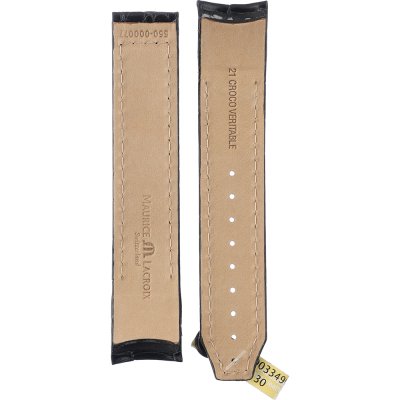 This Maurice Lacroix watch strap is made of leather and is attached to the watch by means of pushpins. The band has a width of 21 mm. The strap has no straight mount which means that this strap is only suitable for the watches listed below.