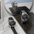 In the context of the 20th anniversary of its Pontos collection in 2020, Maurice Lacroix presented an updated version of its classic Pontos chronograph. A blend of sportiness and modern elegance. The architecture of the case is terraced, which is typical for Maurice Lacroix, as well as the curved chrono-pushers that double as a crown protector. The fairly minimalist sunray dial is fitted with appliqué indices, clear sans serif Arabic hour numerals (truncated at 12 and 6 o’clock to accommodate the larger 30-minute and 12-hour sub-dials). Attention to detail is evident in the snailed interiors of the three counters and minutes/seconds rings framing the dial, as well as the lumen tipped long second hand. Adate window discreetly tucked into the 12-hour counter at 6 o’clock. Visible through the exhibition caseback is the automatic ML112 calibre, based on the Sellita SW500 with a 42-hour power reserve. The movement is decorated with circular graining and Côtes de Genève on the bridges, and the sun-brushed rotor features vertical Côtes de Genève and the brand name and logo. Overall, this is a good value, elegant and modern every day Swiss chronograph.