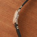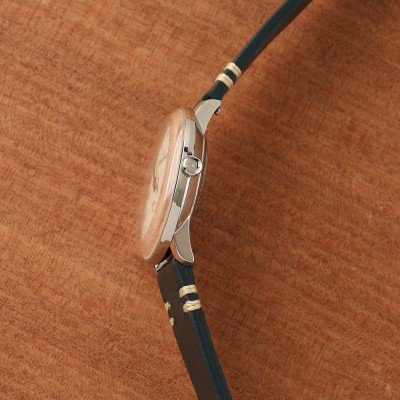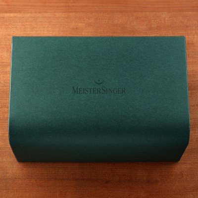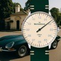 The Limited to 100 numbered Edition Neo J.E Meistersinger watch is quintessentially British with its design inspired by the iconic Jaguar E-Type car. Each watch comes in a box set with a 1:18 scale model of the Jaguar E-Type Cabrio. A slim case with a diameter of 36mm and domed sapphire crystal, the Neo J.E looks like it just stepped out of a sixties James Bond movie! Furthermore, the cream-colored dial references the interior and roof of the E-Type. And the British Racing Green of the vehicle’s paintwork is reflected in the leather band, the dial’s details and the single, green hand. Cognac-colored five-minute markings are a nod to the original wooden steering wheel of the E-Type Jaguar. And finally, the silver numerals are evocative of the chromed wheel rims of the car and give the dial additional depth. The watch is powered by a modified for Meistersinger Swiss Sellita SW200 automatic movement with a power reserve of 38 hours.