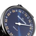MeisterSinger stands for a relaxed understanding of time and is now taking this principle one step further with this Limited to 100 pieces 24-hour edition. The watch does not artificially divide the day into two halves, but shows the 24-hour period as a whole, in a natural, uninterrupted flow.The single hand does not circle the dial twice a day as usual, but only once, allowing you to see the entire day at a glance. Instead of the usual 5-minute markings, alternating fine lines and dots on the edge of the dial indicate 15-minute increments. The blue sunburst dial features even hour numerals applied in gold, lending the dial a sense of depth, and fitted with a domed sapphire glass over the dial. The Swiss Sellita SW330 automatic movement, specially modified for MeisterSinger’s single-hand watches, has a power reserve of 52 hours. It can be viewed through the exhibition back as it performs its task. Each watch is engraved with its edition number on the case back.