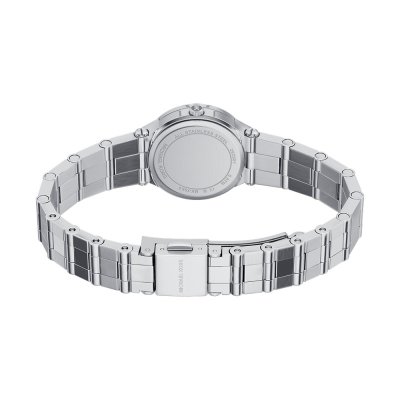 This Michael Kors watch has a case made of stainless steel with a diameter of 26 mm and is fitted with a stainless steel band. Inside the case lies a Miyota movement and the watch features a Mineral crystal.