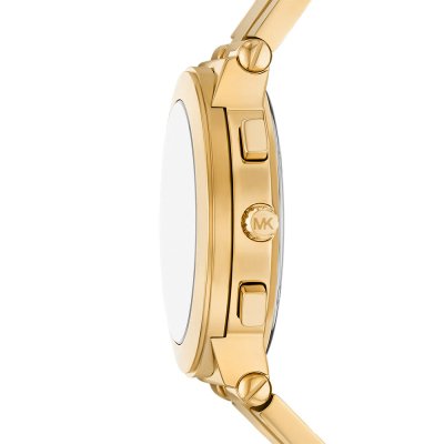This Michael Kors watch has a case made of stainless steel with a diameter of 37 mm and is fitted with a stainless steel band. Inside the case lies a Miyota movement and the watch features a Mineral crystal.