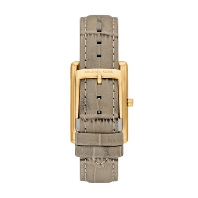 This Michael Kors watch has a case made of stainless steel with a diameter of 26 mm and is fitted with a leather band. Inside the case lies a Miyota movement and the watch features a Mineral crystal.