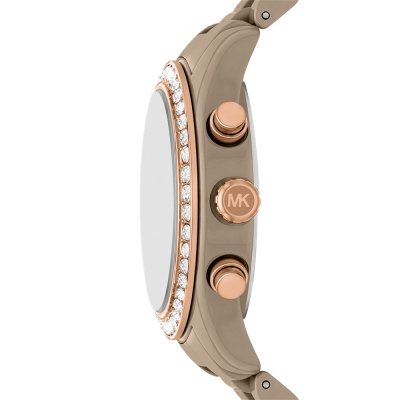 This Michael Kors watch has a case made of ceramic with a diameter of 38 mm and is fitted with a ceramic band. Inside the case lies a Miyota movement and the watch features a Mineral crystal.
