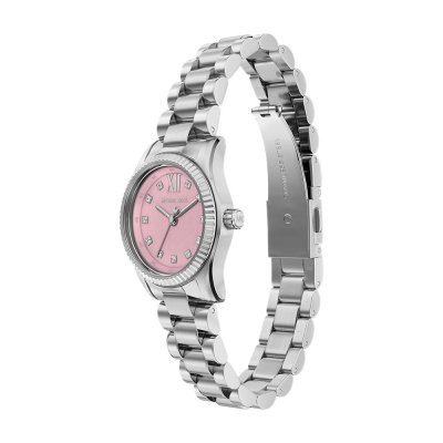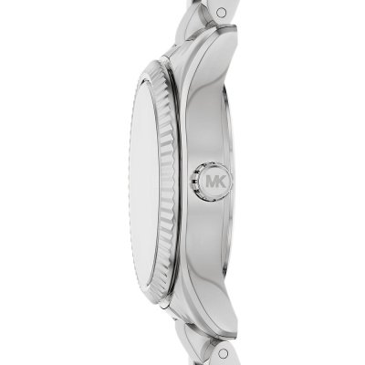 This Michael Kors watch has a case made of stainless steel with a diameter of 26 mm and is fitted with a stainless steel band. Inside the case lies a Seiko Instruments Inc. movement and the watch features a Mineral crystal.