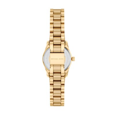 This Michael Kors watch has a case made of stainless steel with a diameter of 26 mm and is fitted with a stainless steel band. Inside the case lies a Seiko Instruments Inc. movement and the watch features a Mineral crystal.