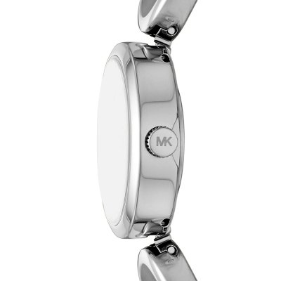 This Michael Kors watch has a case made of stainless steel with a diameter of 21 mm and is fitted with a stainless steel band. Inside the case lies a Seiko Instruments Inc. movement and the watch features a Mineral crystal.