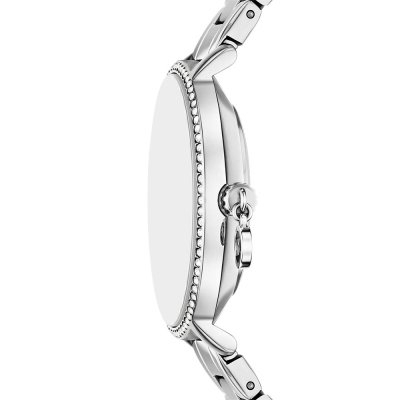 This Michael Kors watch has a case made of stainless steel with a diameter of 32 mm and is fitted with a stainless steel band. Inside the case lies a Seiko Instruments Inc. movement and the watch features a Mineral crystal.