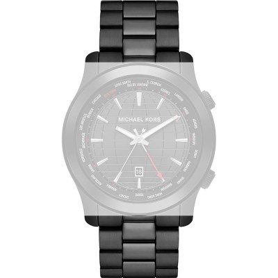 This Michael Kors watch strap is made of stainless steel and is attached to the watch by means of pushpins. The band has a width of 24 mm and is closed by means of a deployment clasp with push buttons. The strap has no straight mount which means that this strap is only suitable for the watches listed below.