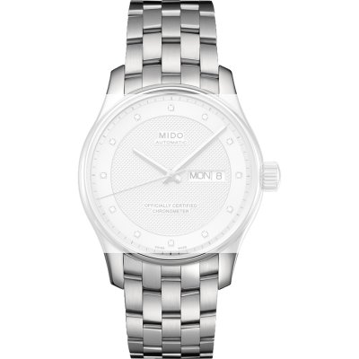 This MIDO watch strap is made of stainless steel and is attached to the watch by means of pushpins. The band has a width of 20 mm and is closed by means of a butterfly clasp with push buttons. The strap has no straight mount which means that this strap is only suitable for the watches listed below.
