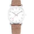 This Mondaine watch strap is made of leather and is attached to the watch by means of pushpins. The band has a width of 22 mm and is closed by means of a buckle. The strap has a straight mount which means that this strap is suitable for all Mondaine watches with a straight mount.