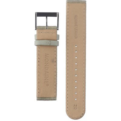 This Mondaine watch strap is made of textile over leather and is attached to the watch by means of pushpins. The band has a width of 20 mm and is closed by means of a buckle. The strap has a straight mount which means that this strap is suitable for all Mondaine watches with a straight mount.