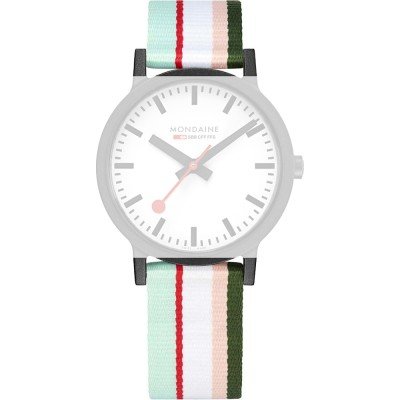 This Mondaine watch strap is made of textile and is attached to the watch by means of quick release pushpins. The band has a width of 20 mm and is closed by means of a buckle. The strap has a straight mount which means that this strap is suitable for all Mondaine watches with a straight mount.