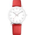 This Mondaine watch strap is made of vegan leather and is attached to the watch by means of quick release pushpins. The band has a width of 20 mm and is closed by means of a buckle. The strap has a straight mount which means that this strap is suitable for all Mondaine watches with a straight mount.