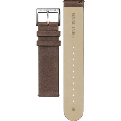 This Mondaine watch strap is made of leather and is attached to the watch by means of quick release pushpins. The band has a width of 20 mm and is closed by means of a buckle. The strap has a straight mount which means that this strap is suitable for all Mondaine watches with a straight mount.