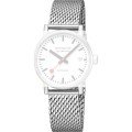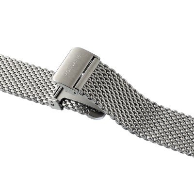 This Mondaine watch strap is made of stainless steel and is attached to the watch by means of quick release pushpins. The band has a width of 18 mm and is closed by means of a deployment buckle. The strap has a straight mount which means that this strap is suitable for all Mondaine watches with a straight mount.