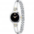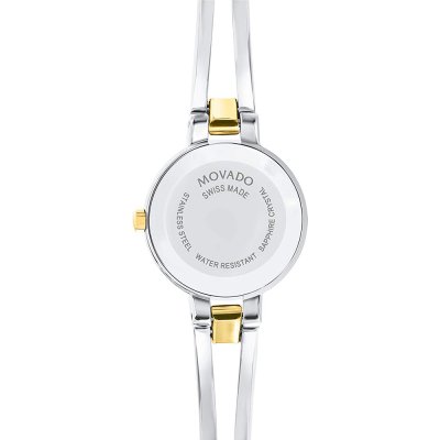 This Movado watch has a case made of stainless steel with a diameter of 24 mm and is fitted with a stainless steel band. Inside the case lies a Ronda movement and the watch features a Sapphire crystal.