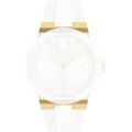 This Movado watch strap is made of silicone and is attached to the watch by means of screws. The band has a width of 22 mm and is closed by means of a buckle. The strap has no straight mount which means that this strap is only suitable for the watches listed below.