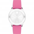 This Movado watch strap is made of silicone and is attached to the watch by means of pushpins. The band has a width of 19 mm and is closed by means of a buckle. The strap has a straight mount which means that this strap is suitable for all Movado watches with a straight mount.
