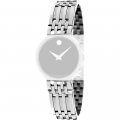This Movado watch strap is made of stainless steel and is attached to the watch by means of steel pins. The band has a width of 14 mm and is closed by means of a jewelry clasp. The strap has no straight mount which means that this strap is only suitable for the watches listed below.