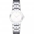 This Movado watch strap is made of stainless steel and is attached to the watch by means of steel pins. The band has a width of 17 mm and is closed by means of a deployment Clasp. The strap has no straight mount which means that this strap is only suitable for the watches listed below.