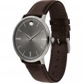 This Movado watch has a case made of stainless steel with a diameter of 40 mm and is fitted with a leather band. Inside the case lies a Ronda movement and the watch features a Sapphire crystal.