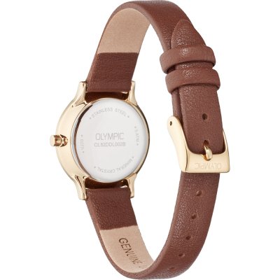 This Olympic watch has a case made of stainless steel with a diameter of 26 mm and is fitted with a leather band. Inside the case lies a Seiko Instruments Inc. movement and the watch features a Mineral crystal.