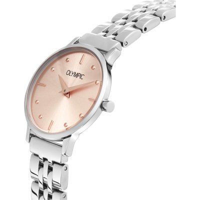 This Olympic watch has a case made of stainless steel with a diameter of 26 mm and is fitted with a stainless steel band. Inside the case lies a Seiko Instruments Inc. movement and the watch features a Mineral crystal.