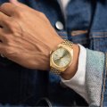 This Olympic watch has a case made of stainless steel with a diameter of 40 mm and is fitted with a stainless steel band. Inside the case lies a Miyota movement and the watch features a Mineral crystal.