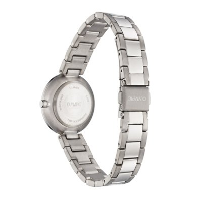 This Olympic watch has a case made of titanium with a diameter of 28 mm and is fitted with a titanium band. Inside the case lies a Miyota movement and the watch features a Sapphire crystal.