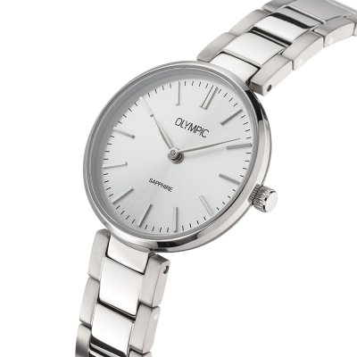This Olympic watch has a case made of titanium with a diameter of 28 mm and is fitted with a titanium band. Inside the case lies a Miyota movement and the watch features a Sapphire crystal.