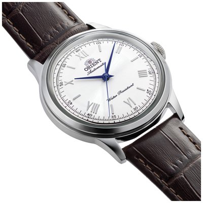 This Orient watch has a case made of stainless steel with a diameter of 38 mm and is fitted with a leather band. Inside the case lies a Epson movement and the watch features a Mineral crystal.