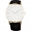 This Orient watch strap is made of leather and is attached to the watch by means of pushpins. The band has a width of 22 mm and is closed by means of a buckle. The strap has a straight mount which means that this strap is suitable for all Orient watches with a straight mount.