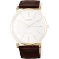 This Orient watch strap is made of leather and is attached to the watch by means of pushpins. The band has a width of 22 mm and is closed by means of a buckle. The strap has a straight mount which means that this strap is suitable for all Orient watches with a straight mount.