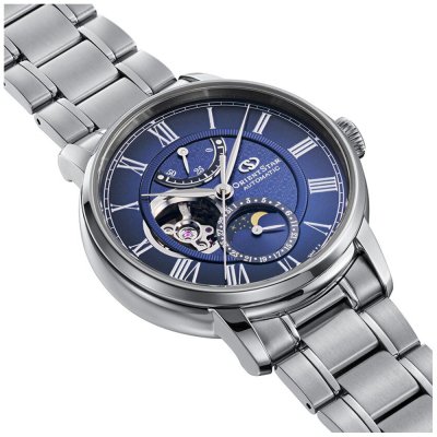 The mechanical Classic M45 is based on the Mechanical Moon Phase watch from 2017. The major update on this watch is the design of the moon phase. The moon’s backdrop has been changed to a vibrant, deep-blue-colored night sky, and the stars appear sharper due to improved brightness. In addition, the curved sapphire crystal now features anti-reflective (SAR) coating on both sides, which blocks approximately ninety-nine percent of reflections. This gives the watch the impression of having no crystal at all. Also, the Orient Star logo - positioned in the center of the dial - is only visible depending on the angle of light. The in-house F7M42 automatic movement with 50 hours power reserve an beautifully guilloche rotor is visible through the case back, making this 45 a complete and beautifully detailed moon phase watch.