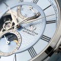 This limited to 190 pieces M45 F7 watch has a design based on the Mechanical Moon Phase that was released in 2017. The moon phase has significantly changed with respect to the original, with the backdrop now a deep-blue night sky, which makes the stars appear clearer and brighter. The beautifully detailed dial features a pattern made up from the Orient Star logo that is only visible depending on the angle of light. With all the important features concentrated in the center of the layered dial, the outer ring with Roman Numerals really stands out. The anti-reflective coating on both sides of the sapphire crystal blocks almost ninety-nine percent of reflections, providing high visibility from every angle.