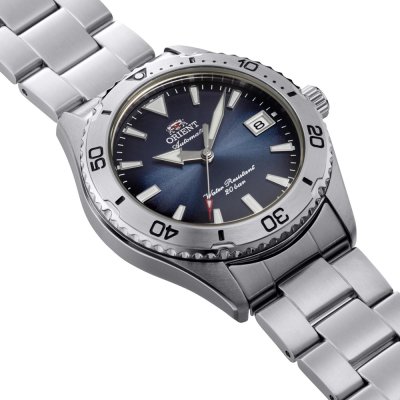 This Orient watch has a case made of stainless steel with a diameter of 39 mm and is fitted with a stainless steel band. Inside the case lies a Orient movement and the watch features a Sapphire crystal.