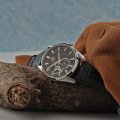 This Orient watch has a case made of stainless steel with a diameter of 41 mm and is fitted with a leather band. Inside the case lies a Seiko Instruments Inc. movement and the watch features a Sapphire crystal.
