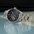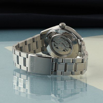 This Orient watch has a case made of stainless steel with a diameter of 41 mm and is fitted with a stainless steel band. Inside the case lies a Seiko Instruments Inc. movement and the watch features a Single anti-reflective sapphire crystal.