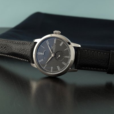The beautiful M45 F7 watches combine classic elements with a modern finish. It is a compact and elegant dress watch featuring a dial with a sandblasted, textured and matte dial. The watch is powered by a F7H44 automatic movement, finished with Geneva stripes and chamfered edges. The watch is finished with a dual curved, anti-reflective sapphire crystal on the front and a sapphire crystal case back, showing off the movement.