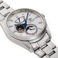 This Orient watch has a case made of stainless steel with a diameter of 41 mm and is fitted with a stainless steel band. Inside the case lies a Orient movement and the watch features a Single anti-reflective sapphire crystal.