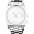 This Orient watch strap is made of stainless steel and is attached to the watch by means of pushpins. The band has a width of 22 mm and is closed by means of a deployment clasp with push buttons. The strap has no straight mount which means that this strap is only suitable for the watches listed below.