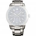 This Orient watch strap is made of stainless steel and is attached to the watch by means of pushpins. The band has a width of 20 mm and is closed by means of a deployment clasp with push buttons. The strap has no straight mount which means that this strap is only suitable for the watches listed below.