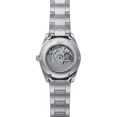 This Orient watch has a case made of stainless steel with a diameter of 38.5 mm and is fitted with a stainless steel band. Inside the case lies a Orient movement and the watch features a Sapphire crystal.