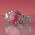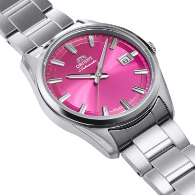 This Orient watch has a case made of stainless steel with a diameter of 38.5 mm and is fitted with a stainless steel band. Inside the case lies a Orient movement and the watch features a Sapphire crystal.