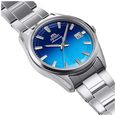 This Orient watch has a case made of stainless steel with a diameter of 38.5 mm and is fitted with a stainless steel band. Inside the case lies a Orient movement and the watch features a Sapphire crystal.