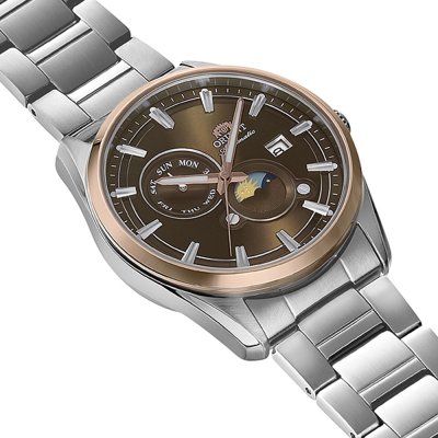 This Orient watch has a case made of stainless steel with a diameter of 41 mm and is fitted with a stainless steel band. Inside the case lies a Epson movement and the watch features a Sapphire crystal.