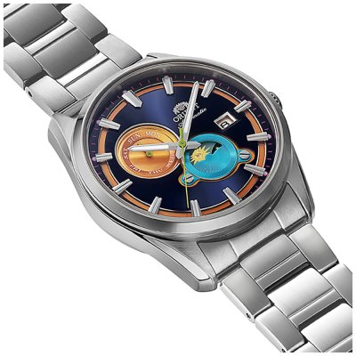 This Orient watch has a case made of stainless steel with a diameter of 41 mm and is fitted with a stainless steel band. Inside the case lies a Epson movement and the watch features a Sapphire crystal.