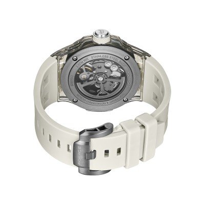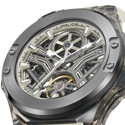 This Police watch has a case made of Resin with a diameter of 44 mm and is fitted with a rubber band. Inside the case lies a CN movement and the watch features a Mineral crystal.
