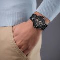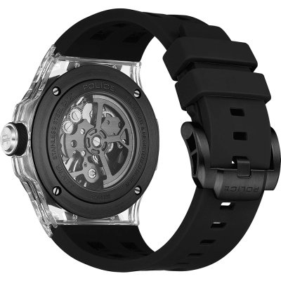This Police watch has a case made of Resin with a diameter of 44 mm and is fitted with a rubber band. Inside the case lies a CN movement and the watch features a Mineral crystal.